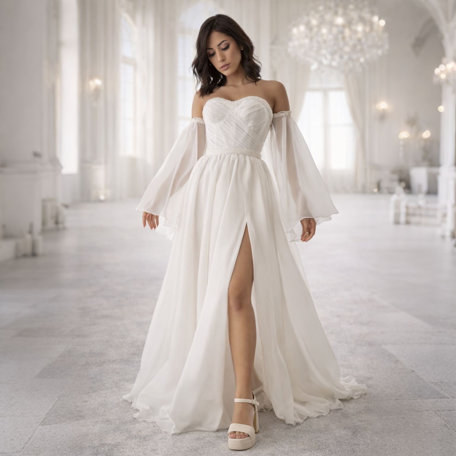 - אלמנטים נשלפים – שרוולים, שכמיות, חגורות – כדי לעבור בין החופה לרחבת הריקודים